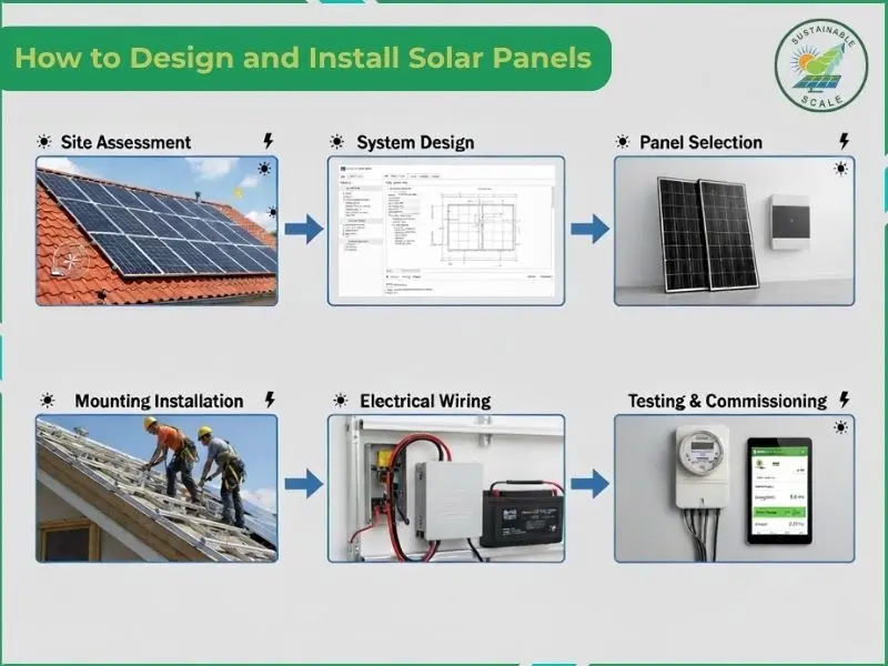 To install a solar panel, assess your energy needs, evaluate the site for optimal placement and orientation, secure permits and mount the system. You need to fasten the panels for maximum sunlight, wire and ground the components to the inverter, then inspect and test the system before activation.